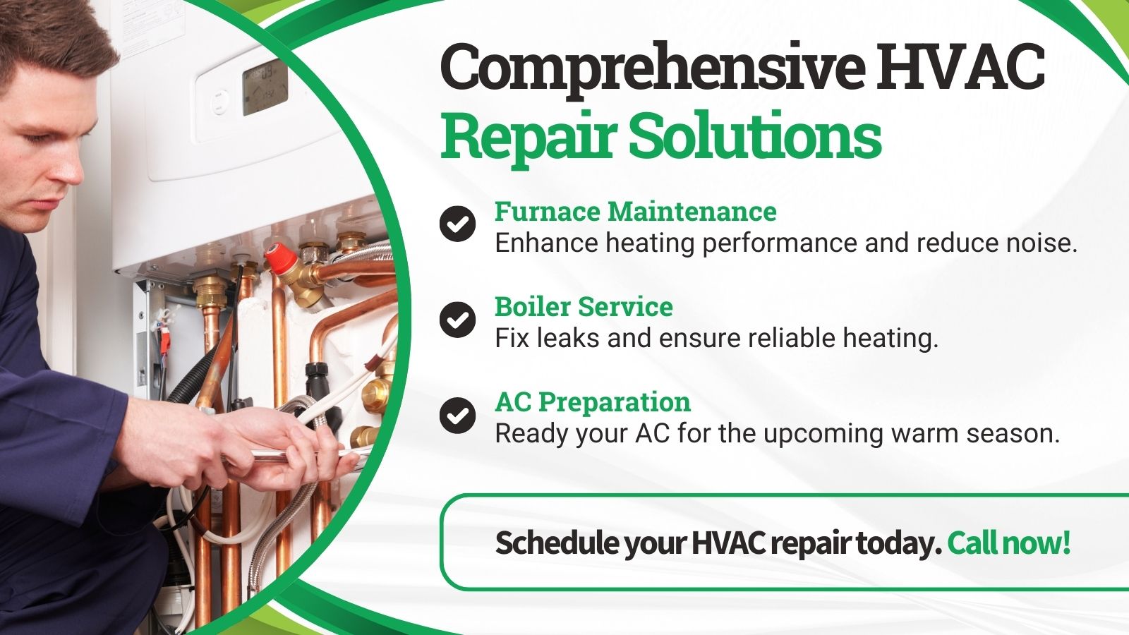 Your heating system has been working so hard for months now. How is it doing? Does it need any care? Whether it’s a furnace or boiler in need of repair after a long season of keeping your home warm, or AC service as we move into warmer temps in the coming months, Ambient Comfort is here to help with all of your HVAC needs. And we have a special offer for you!